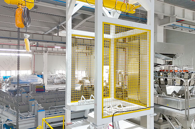 噸袋拆卸機不僅可以拆卸大袋材料,還可以直接連接后續的z型進料機,保證材料的無縫輸送。為保證操作安全,機器周圍設置安全網或防護板,避免操作過程中發生事故。
